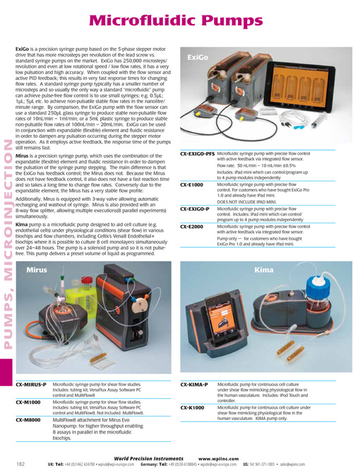with active feedback via integrated flow sensor. Flow rate: 50 nL/min – 10 mL/min ±0.5% Includes: iPad mini which can control/program up to 4 pump modules independently