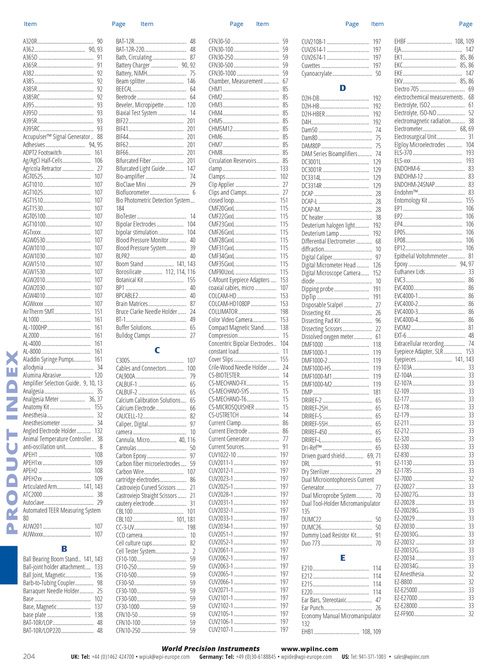 A320R . . . . . . . . . . . . . . . . . . . . . . . . . . . . . . . . . . . . . . . . 90 A362 . . . . . . . . . . . . . . . . . . . . . . . . . . . . . . . . . . . . 90, 93 A365D . . . . . . . . . . . . . . . . . . . . . . . . . . . . . . . . . . . . . . . 91 A365R . . . . . . . . . . . . . . . . . . . . . . . . . . . . . . . . . . . . . . . . 91 A382 . . . . . . . . . . . . . . . . . . . . . . . . . . . . . . . . . . . . . . . . . . 92 A385 . . . . . . . . . . . . . . . . . . . . . . . . . . . . . . . . . . . . . . . . . . 92 A385R . . . . . . . . . . . . . . . . . . . . . . . . . . . . . . . . . . . . . . . . 92 A385RC . . . . . . . . . . . . . . . . . . . . . . . . . . . . . . . . . . . . . . 92 A395 . . . . . . . . . . . . . . . . . . . . . . . . . . . . . . . . . . . . . . . . . . 93 A395D . . . . . . . . . . . . . . . . . . . . . . . . . . . . . . . . . . . . . . . 93 A395R . . . . . . . . . . . . . . . . . . . . . . . . . . . . . . . . . . . . . . . . 93 A395RC . . . . . . . . . . . . . . . . . . . . . . . . . . . . . . . . . . . . . . 93 Accupulser™ Signal Generator . . 88 Adhesives . . . . . . . . . . . . . . . . . . . . . . . . . . . . 94, 95 ADPT2 Footswitch . . . . . . . . . . . . . . . . . . . . 161 Ag/AgCl Half-Cells . . . . . . . . . . . . . . . . . . . . 106 Agricola Retractor . . . . . . . . . . . . . . . . . . . . . . 27 AGT0525 . . . . . . . . . . . . . . . . . . . . . . . . . . . . . . . . . . 107 AGT1010 . . . . . . . . . . . . . . . . . . . . . . . . . . . . . . . . . . 107 AGT1025 . . . . . . . . . . . . . . . . . . . . . . . . . . . . . . . . . . 107 AGT1510 . . . . . . . . . . . . . . . . . . . . . . . . . . . . . . . . . . 107 AGT1530 . . . . . . . . . . . . . . . . . . . . . . . . . . . . . . . . . . 107 AGT05100 . . . . . . . . . . . . . . . . . . . . . . . . . . . . . . . . 107 AGT10100 . . . . . . . . . . . . . . . . . . . . . . . . . . . . . . . . 107 AGTxxxx . . . . . . . . . . . . . . . . . . . . . . . . . . . . . . . . . . . 107 AGW0530 . . . . . . . . . . . . . . . . . . . . . . . . . . . . . . . . 107 AGW1010 . . . . . . . . . . . . . . . . . . . . . . . . . . . . . . . . 107 AGW1030 . . . . . . . . . . . . . . . . . . . . . . . . . . . . . . . . 107 AGW1510 . . . . . . . . . . . . . . . . . . . . . . . . . . . . . . . . 107 AGW1530 . . . . . . . . . . . . . . . . . . . . . . . . . . . . . . . . 107 AGW2010 . . . . . . . . . . . . . . . . . . . . . . . . . . . . . . . . 107 AGW2030 . . . . . . . . . . . . . . . . . . . . . . . . . . . . . . . . 107 AGW4010 . . . . . . . . . . . . . . . . . . . . . . . . . . . . . . . . 107 AGWxxxx . . . . . . . . . . . . . . . . . . . . . . . . . . . . . . . . . 107 AirTherm SMT . . . . . . . . . . . . . . . . . . . . . . . . . . 151 AL1000 . . . . . . . . . . . . . . . . . . . . . . . . . . . . . . . . . . . . 161 AL-1000HP . . . . . . . . . . . . . . . . . . . . . . . . . . . . . . . 161 AL2000 . . . . . . . . . . . . . . . . . . . . . . . . . . . . . . . . . . . . 161 AL-4000 . . . . . . . . . . . . . . . . . . . . . . . . . . . . . . . . . . . 161 AL-8000 . . . . . . . . . . . . . . . . . . . . . . . . . . . . . . . . . . . 161 Aladdin Syringe Pumps . . . . . . . . . . . . 161 allodynia . . . . . . . . . . . . . . . . . . . . . . . . . . . . . . . . . . . 34 Alumina Abrasive . . . . . . . . . . . . . . . . . . . . . 120 Amplifier Selection Guide . 9, 10, 13 Analgesia . . . . . . . . . . . . . . . . . . . . . . . . . . . . . . . . . . . 35 Analgesia Meter . . . . . . . . . . . . . . . . . . 36, 37 Anatomy Kit . . . . . . . . . . . . . . . . . . . . . . . . . . . . . 155 Anesthesia . . . . . . . . . . . . . . . . . . . . . . . . . . . . . . . . . 32 Anesthesiometer . . . . . . . . . . . . . . . . . . . . . . . 34 Angled Electrode Holder . . . . . . . . . . 132 Animal Temperature Controller . 38 anti-oscillation unit . . . . . . . . . . . . . . . . . . . . . . 8 APEH1 . . . . . . . . . . . . . . . . . . . . . . . . . . . . . . . . . . . . . 108 APEH1xx . . . . . . . . . . . . . . . . . . . . . . . . . . . . . . . . . . 109 APEH2 . . . . . . . . . . . . . . . . . . . . . . . . . . . . . . . . . . . . . 108 APEH2xx . . . . . . . . . . . . . . . . . . . . . . . . . . . . . . . . . . 109 Articulated Arm . . . . . . . . . . . . . . . . . 141, 143 ATC2000 . . . . . . . . . . . . . . . . . . . . . . . . . . . . . . . . . . . . 38 Autoclave . . . . . . . . . . . . . . . . . . . . . . . . . . . . . . . . . . . 29 Automated TEER Measuring System 80 AUW201 . . . . . . . . . . . . . . . . . . . . . . . . . . . . . . . . . . 107 AUWxxxx . . . . . . . . . . . . . . . . . . . . . . . . . . . . . . . . . . 107
