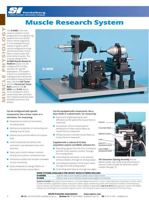 SOME SYSTEMS AVAILABLE FOR INTACT MUSCLE FIBERS INCLUDE: SI-MKBM System with a 5cm heated cuvette and a linear motor SI-MKB System with a 5cm heated cuvette and a digital micrometer