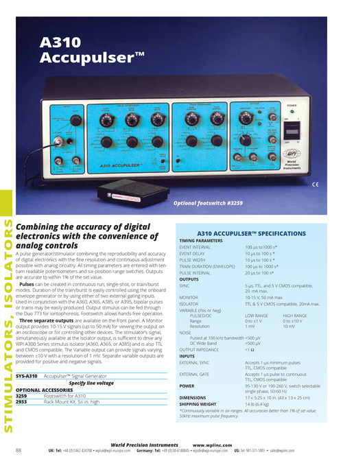 Accupulser™ Signal Generator Specify line voltage OPTIONAL ACCESSORIES 3259 Footswitch for A310 2933 Rack Mount Kit, 51⁄4 in. high