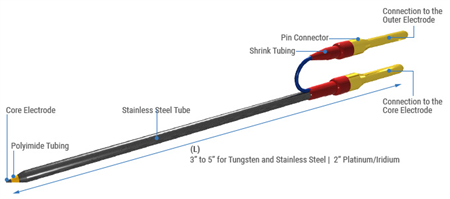 The CEA-200-SS Concentric electrodes with exposed metal shield are excellent for shield macro recording of a large number of neural elements, nerves or neurons, simultaneously; as opposed to single unit recording that intended to record from one or just a few neural elements. The CEA-200-SS is ideal for chronic implantation.