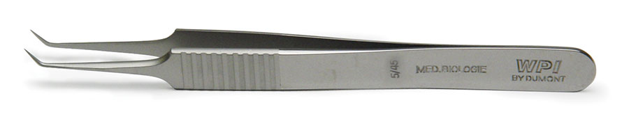Tweezer, Dumont # 5 Medical 90' bent, 11cm long 0.05 x 0.01mm tips